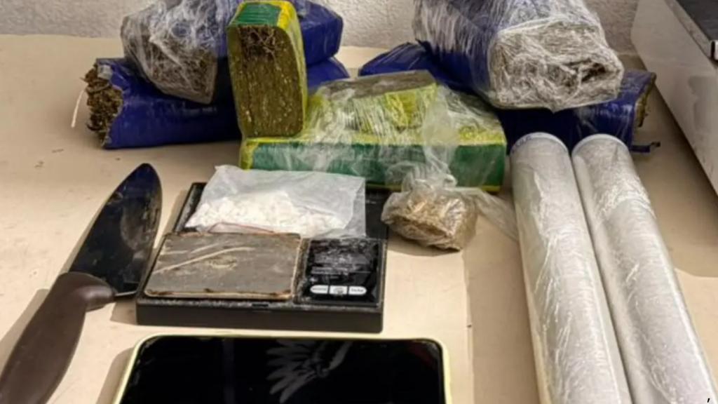Na casa também foram encontrados uma balança de precisão, uma faca e materiais utilizados para fracionar e embalar entorpecentes, itens normalmente associados à preparação de drogas para comercialização.