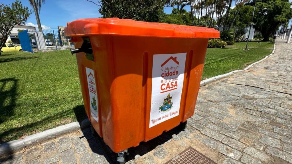 Os novos equipamentos, identificados com a frase “Cuide da sua cidade, ela é sua casa”, estão sendo distribuídos em locais com maior volume de descarte e em áreas residenciais que ainda não contavam com lixeiras adequadas para o volume de lixo gerado.