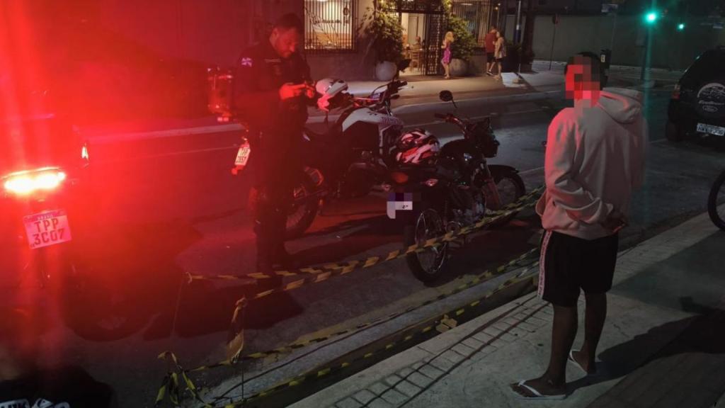 Um adolescente de 15 anos foi flagrado conduzindo uma motocicleta e avançando o sinal vermelho na noite de sábado (7) em Balneário Camboriú. A ocorrência foi registrada por volta das 21h durante fiscalização realizada por agentes da BC Trânsito, no cruzamento da Rua Agrolândia com a 5ª Avenida.