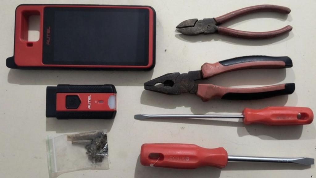 Dentro do carro, os policiais encontraram ferramentas, um scanner automotivo e cerca de 1,7 grama de substância semelhante à maconha.