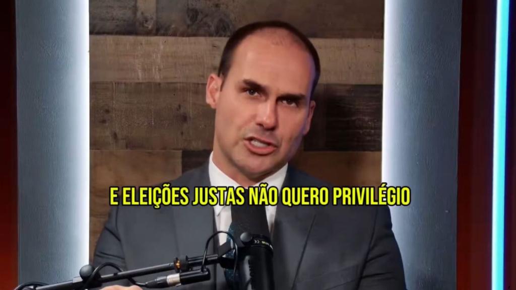 No vídeo, Eduardo Bolsonaro também comenta o cenário político nacional e faz comparações com outros países, mencionando possíveis impactos em caso de reeleição do presidente Luiz Inácio Lula da Silva (PT).