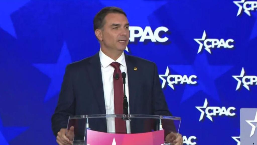O senador Flávio Bolsonaro (PL-RJ) discursou neste sábado (28) durante a CPAC, conferência conservadora realizada no Texas, nos Estados Unidos, onde defendeu a construção de alianças políticas internacionais e fez críticas ao governo do presidente Luiz Inácio Lula da Silva.
