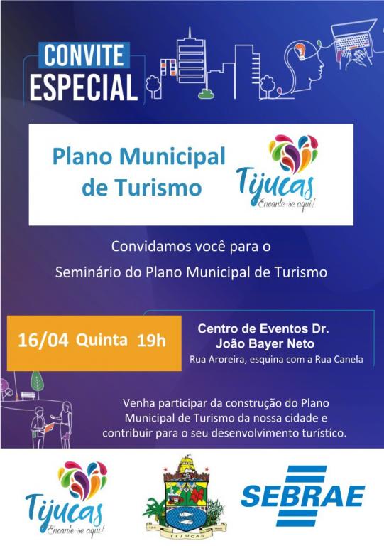 A Prefeitura de Tijucas realiza, no próximo dia 16 de abril, um seminário aberto ao público para atualizar o Plano Municipal de Turismo e projetar o futuro do setor na cidade. A iniciativa é promovida pela Secretaria de Cultura, Juventude e Turismo, em parceria com o Sebrae, e pretende envolver moradores, empresários e representantes de entidades.