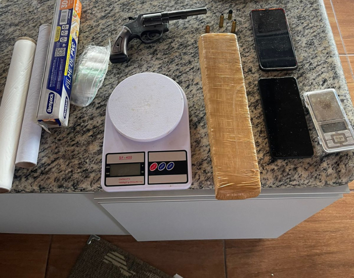 O mandado de busca e apreensão foi cumprido na residência da suspeita. No local, os policiais encontraram porções de maconha e comprimidos de ecstasy, além de um revólver calibre .38, munições e outros materiais que podem reforçar as investigações.