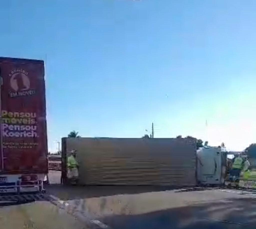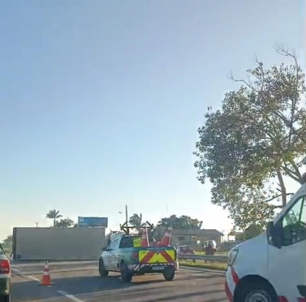 O caminhão, carregado com roupas, tombou e espalhou a carga pela pista, obrigando a interdição total das faixas principais em diversos momentos para o atendimento da ocorrência. Durante os trabalhos, o trânsito chegou a fluir apenas pelo acostamento, causando lentidão intensa.