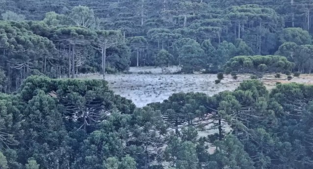 A Serra de Santa Catarina amanheceu sob frio intenso nesta segunda-feira (20), com registro de geada e temperaturas próximas dos 2°C em diversas cidades da região.