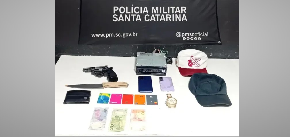 Dois homens foram presos pela Polícia Militar na noite desta terça-feira (21), suspeitos de praticar um roubo no bairro Itaipava, em Itajaí. A dupla teria rendido uma vítima, levado um carro e a obrigado a fazer uma transferência bancária via Pix mediante ameaça.