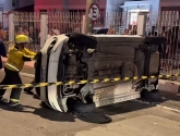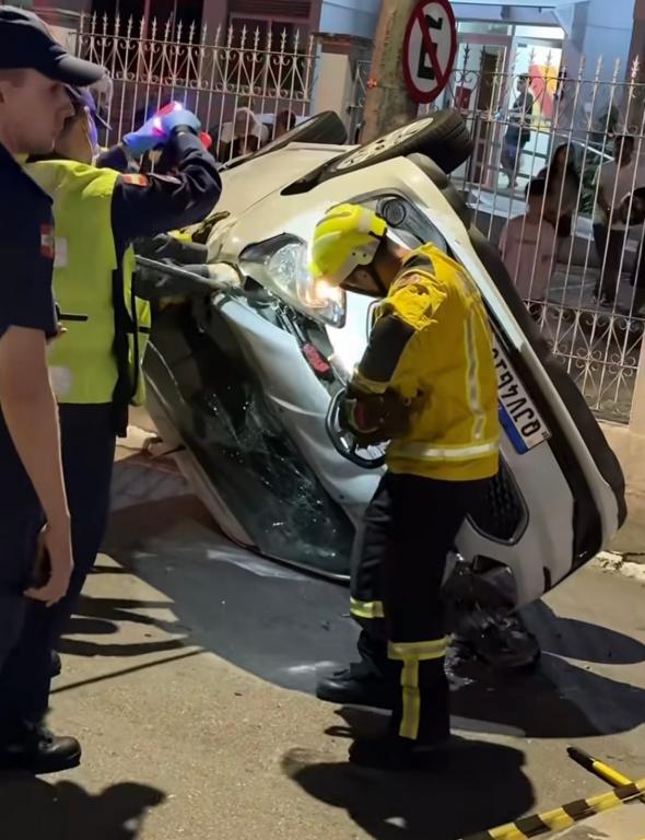 Com a força da batida, um dos carros virou na pista, enquanto o outro ficou com danos laterais. A cena chamou a atenção de moradores e exigiu rápida atuação dos socorristas.