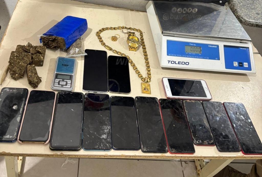 Na sequência, diligências levaram os policiais a imóveis ligados aos envolvidos, onde foram apreendidos mais entorpecentes, uma balança de precisão e diversos aparelhos celulares.