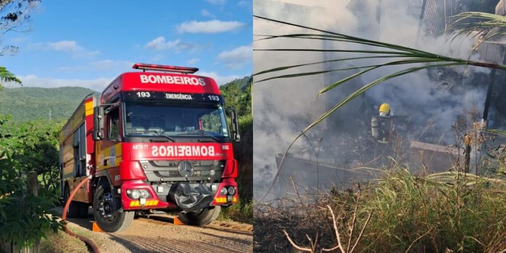 Um incêndio em residência mobilizou equipes do Corpo de Bombeiros Militar de Santa Catarina na tarde desta segunda-feira (27), na cidade de Biguaçu, na Grande Florianópolis.