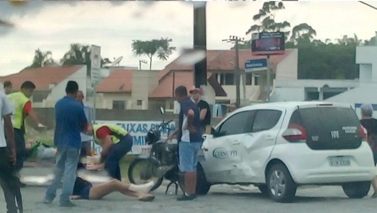 Um acidente envolvendo um carro e uma moto deixou duas mulheres feridas na manhã desta quarta-feira (14) em Tijucas. A colisão aconteceu por volta das 09h32min na esquina da rua Coronel Conceição, com a rua Valério Gomes, no bairro Praça.