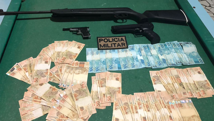 De acordo com o Major Éder Jaciel de Souza Oliveira, após uma varredura no local foi encontrado uma arma de fogo calibre 6,35 mm da marca Beretta, um simulacro de pressão e outra espingarda de pressão, além de vultosa quantia em dinheiro.