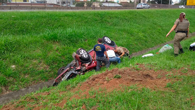 Um acidente grave deixou duas vítimas feridas no início da tarde desta quinta- feira (15), em Itapema. O capotamento aconteceu por volta das 13h, na marginal Oeste da BR-101.