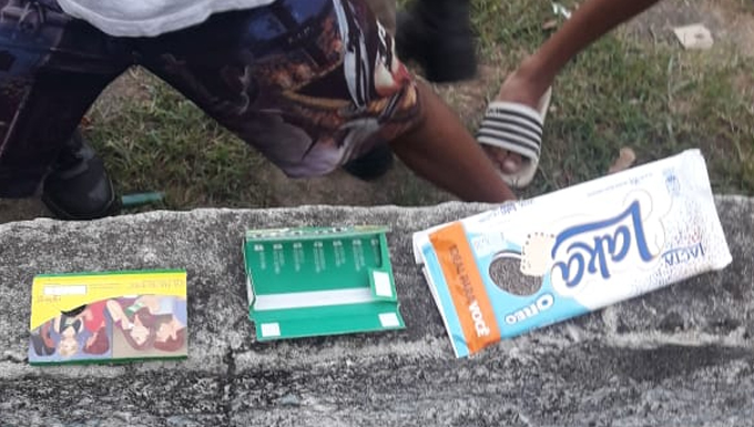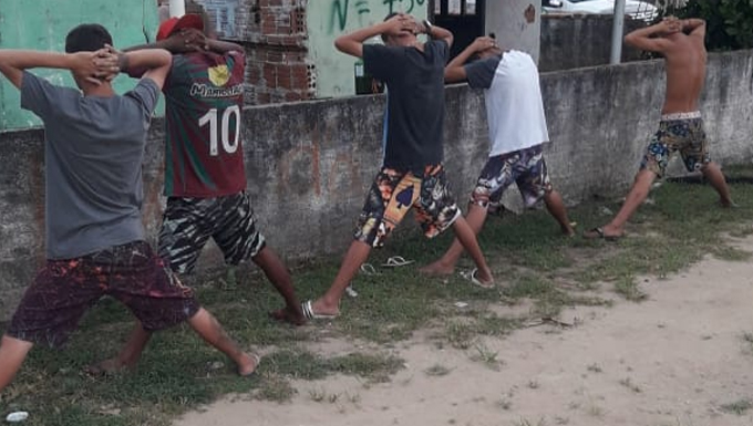 A ação ocorreu em uma casa abandonada onde a polícia encontrou com eles uma garrafa de whisky, energético, embalagens de barras de chocolate, chicletes e salgadinhos.