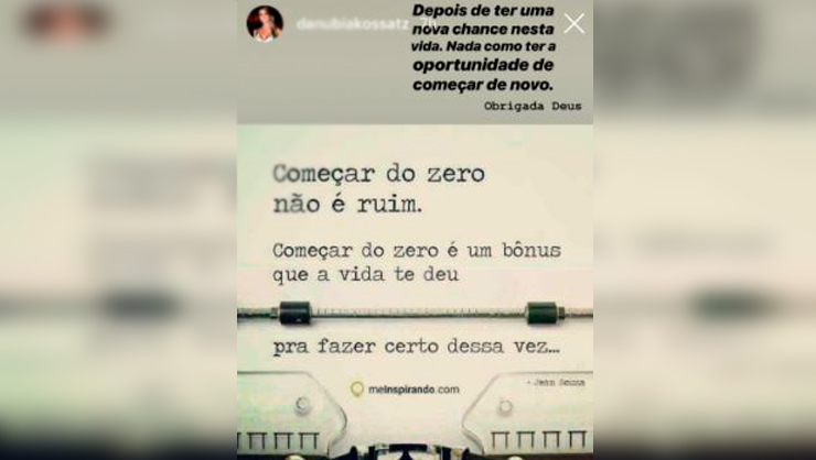 Em sua rede social Instagram, Kossatz realizou postagens agradecendo a Deus pelo livramento que os dois tiveram. Uma dessas postagens a jornalista escreveu; “Depois de ter uma nova chance nesta vida. Nada como ter a oportunidade de começar de novo”. A postagem ainda segue com a frase pronta. “Começar no zero não é ruim. Começar do zero é um bônus que a vida te deu”.