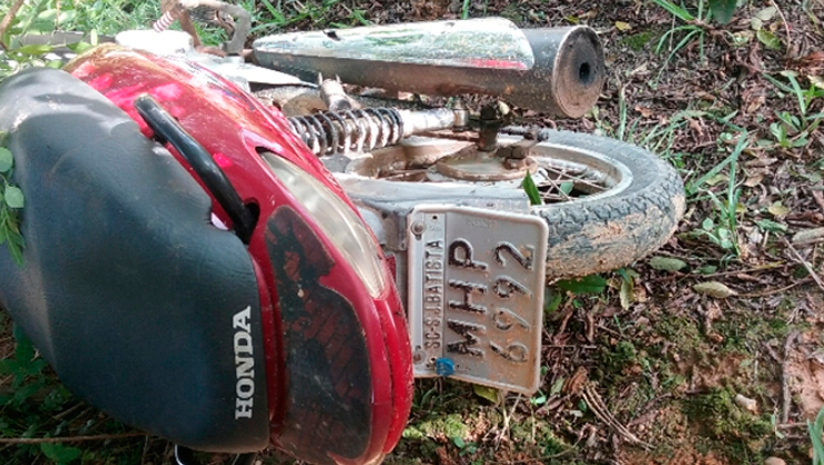 Uma motocicleta com registro de furto, foi recuperada pela Polícia Militar, na rua Leonel Marcelino Pereira, no bairro Cardoso, em São João Batista.