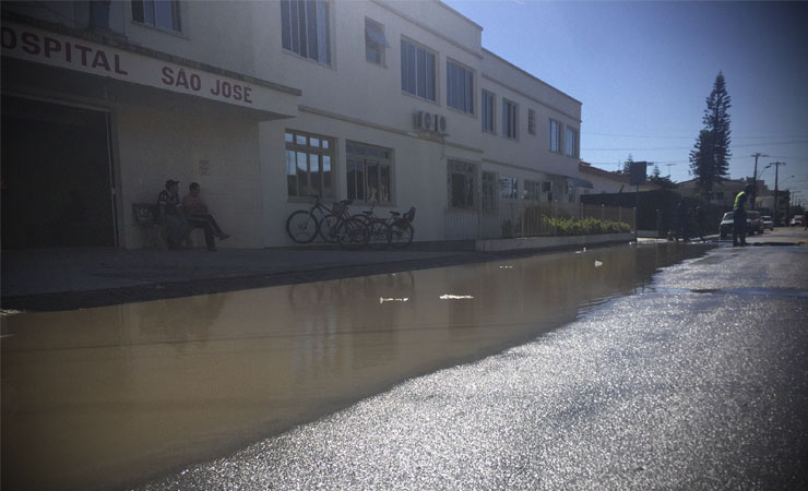 Quem precisou acessar o hospital São José no início da tarde desta quarta-feira (27), teve que enfrentar um alagamento na rua Marechal Deodoro. As águas eram provenientes da obra de saneamento básico que acontece nas proximidades.