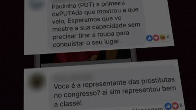Paulinha foi alvo de ofensas e agressões em suas redes sociais, após realizar uma postagem com roupa que usou, macacão vermelho com decote, na cerimônia de posse na Assembleia Legislativa de Santa Catarina (Alesc).