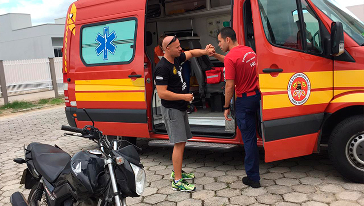 O Bombero Civil Bernardo Faccin se envolveu em um acidente no início da tarde desta segunda-feira (11), em Tijucas. A colisão entre uma moto e um veículo aconteceu na rua Bernadina C. Feller, no bairro Joáia.