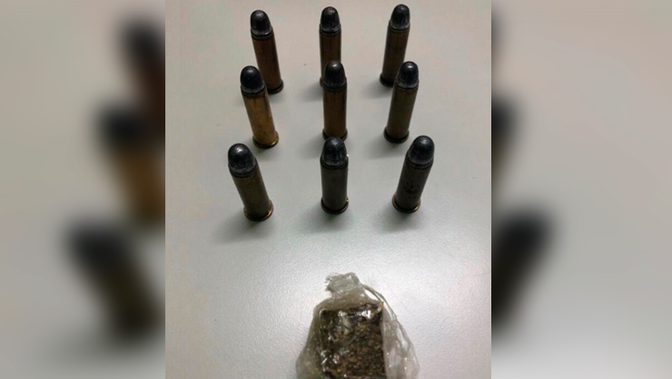 A Polícia Civil se deslocou até a residência mencionada, onde foi apreendido o autor. Com ele havia uma bolsa preta de viagem, que além pertences pessoais e as identidades de M.V.S.S. e C.P.R.T., haviam 9 unidades de munições de calibre 38, e um torrão de maconha também foi encontrado em seu interior.