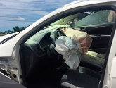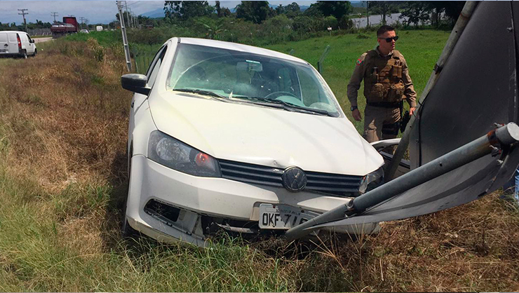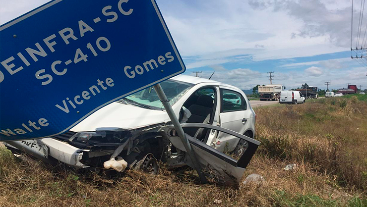 Com o impacto da colisão, o automóvel foi parar às margens da pista contrária e ainda colidiu em uma placa de sinalização. Dois air bags contidos no veículo foram acionados.