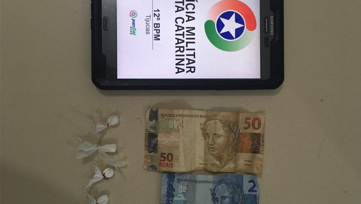 Um adolescente de 17 anos foi preso na noite desta quarta-feira (13), acusado de tráfico de cocaína, em Tijucas. De acordo com os policiais ele foi flagrado comercializando a droga junto a um usuário em ponto de ônibus, no bairro Pernambuco.