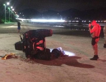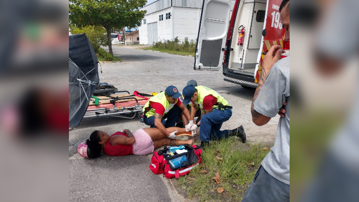 A vítima foi socorrida por uma equipe do Corpo de Bombeiros e conduzida ao Hospital São José com suspeita de fraturas na perna direita.