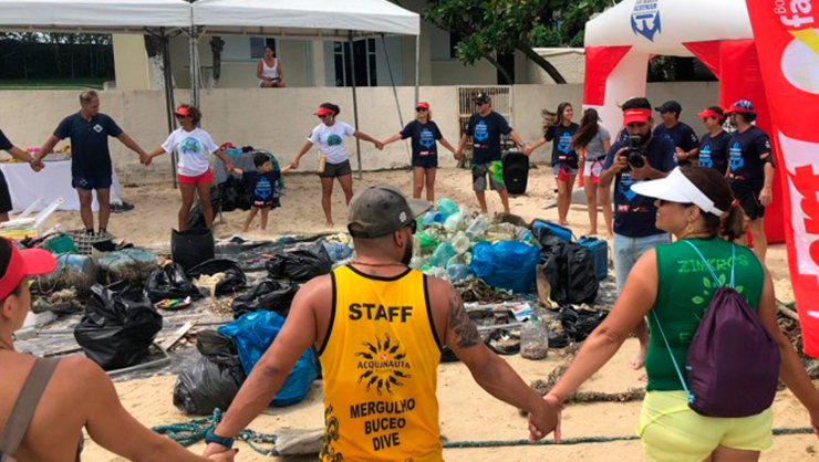 Segundo a organização, foram mobilizados 100 voluntários, que atuaram na orla da praia, costões e fundo do mar, durante 3h30.