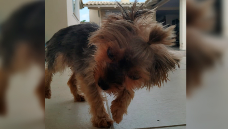 A fêmea da raça Yorkshire, foi levada para residência de Rodrigo, após quase ser atropelado em via pública. Quaisquer informações sobre o proprietário do animal entre em contato pelo (048) 99145-9760 falar com Rodrigo.