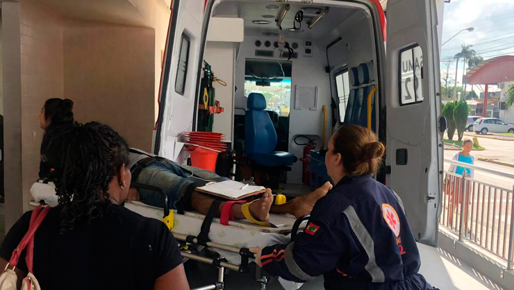 Com impacto da batida o motociclista identificado apenas como Alan foi socorrido com suspeitas de fraturas. A vítima foi conduzida pela ambulancia do SAMU para o Hospital são José de Tijucas.