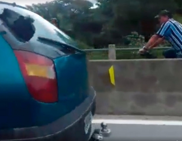 Ao perceber a chegada da Polícia Militar, o portador da arma tentou empreender fuga, mas foi alcançado pelos policiais depois de tentar dispensar a arma jogando pela janela do veículo.