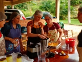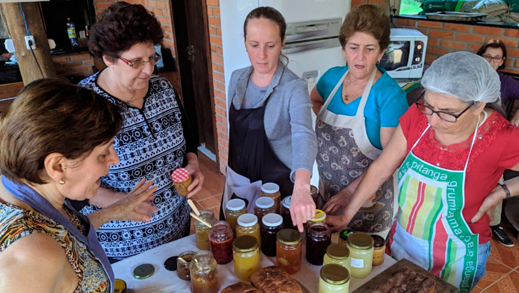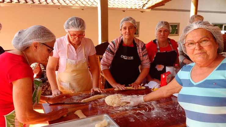 O curso gratuito, novamente ministrado pela instrutora aposentada da Epagri, Maria Depin, aconteceu na propriedade da senhora Luzia Ceccati, no bairro Moura, onde cerca de 20 agricultoras participaram. Além da fabricação de pães e massas, geleias, doces e compotas, utilizaram também a biomassa da banana verde, objeto do 1º curso, realizado em 2018.