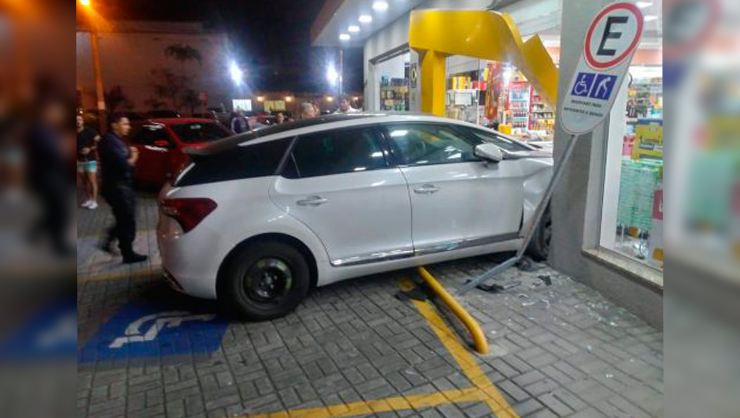 Segundo informações de testemunhas, a condutora teria errado os pedais do carro automático. Ela se assustou, perdeu o controle e bateu com o veículo na porta de vidro, invadindo e danificando os produtos e parte da estrutura da farmácia Nissei.