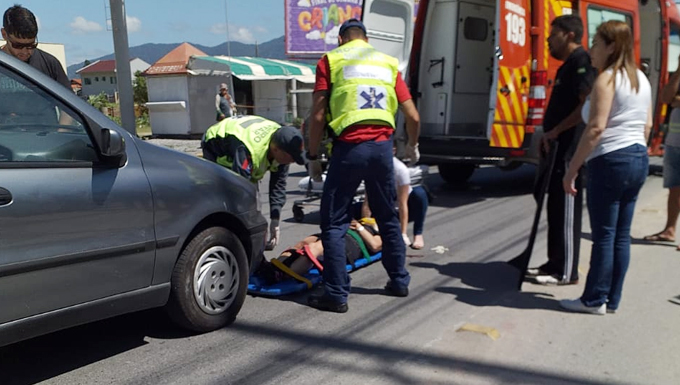 Na manhã desta quinta-feira (10) uma pedestre ficou ferida ao ser atingida por um automóvel em Porto Belo. O atropelamento ocorreu na Avenida Conceição dos Santos, no Bairro Perequê.