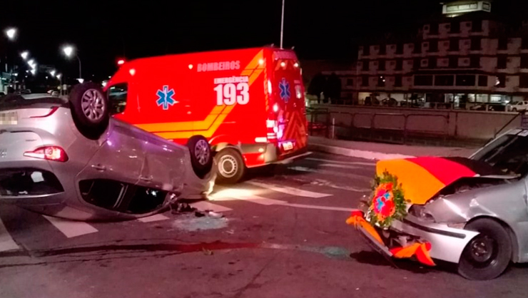 Uma jovem ficou ferida após uma colisão seguida de capotamento entre um Fiat/Argo com placas de Belo Horizonte e um VW/Saveiro com placas de Brusque. O acidente ocorreu na noite desta quinta-feira (10) na rua Conselheiro Rui Barbosa, no Centro de Brusque.