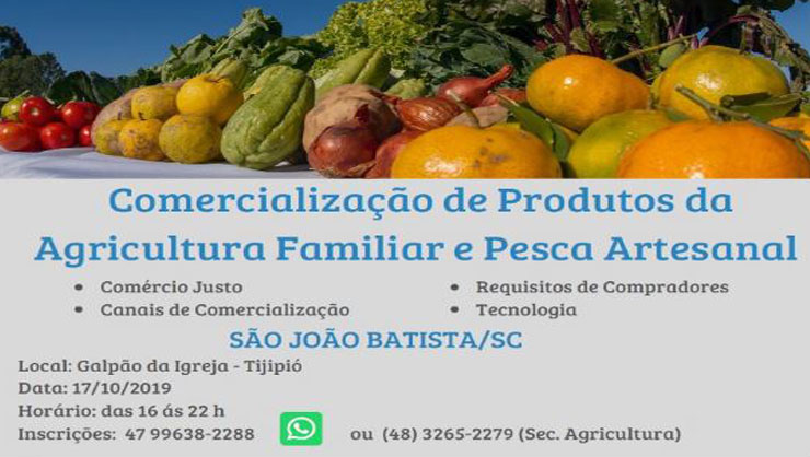 O evento é uma promoção conjunta da Secretaria Municipal de Agricultura, do Sebrae/SC, da Epagri e da plataforma Sumá. As inscrições podem ser efetuadas de forma gratuita pelos fones (48) 3265-2279 ou (47) 99638-2288 (WhatsApp).