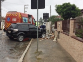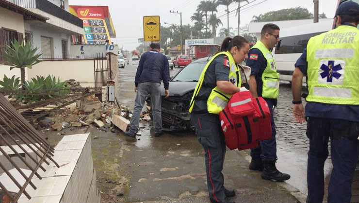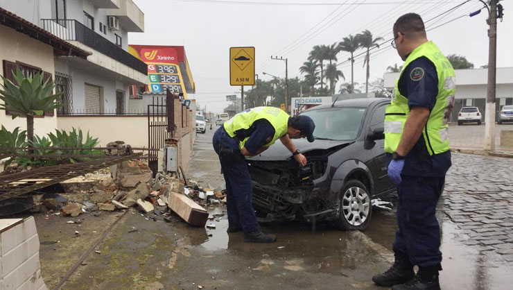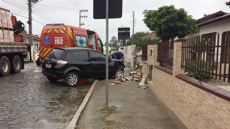Uma condutora de um Ford\KA perdeu o controle da direção e acabou colidindo contra o muro de uma residência na avenida Tenente Carvalho, em Tijucas. O acidente aconteceu por volta das 12h20min desta terça-feira (15) próximo ao posto Juninho, região central da cidade.