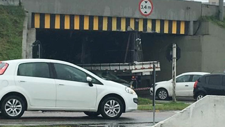Na manhã desta quarta-feira (16), um caminhão ficou trancado em um viaduto da BR-101 localizado nas proximidades do Corpo de Bombeiros entre os bairros Jardim Praia mar e Meia Praia, em Itapema. O trânsito foi prejudicado no local.