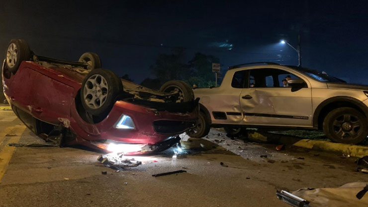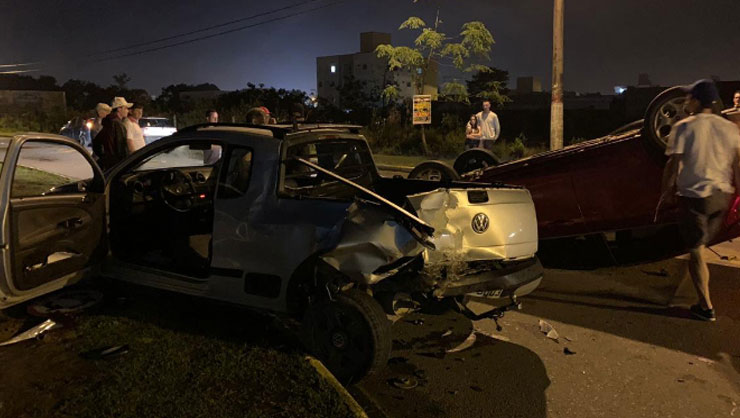 De acordo com informações de testemunhas, o automóvel Ford/Fiesta seguia pela rua 13 de Maio, quando colidiu na traseira da Saveiro e capotou.
