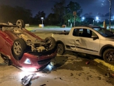 Na noite desta sexta-feira (18) uma colisão traseira seguida de capotamento deixou duas pessoas feridas. O acidente foi registrado por volta das 23h30min, na rótula de acesso ao bairro Universitário, em Tijucas.