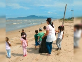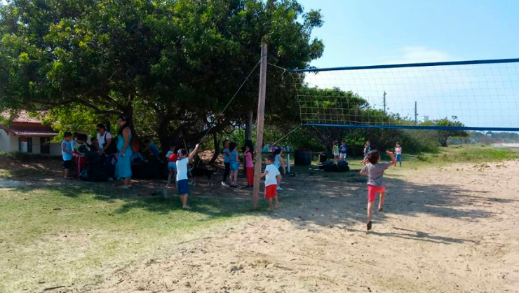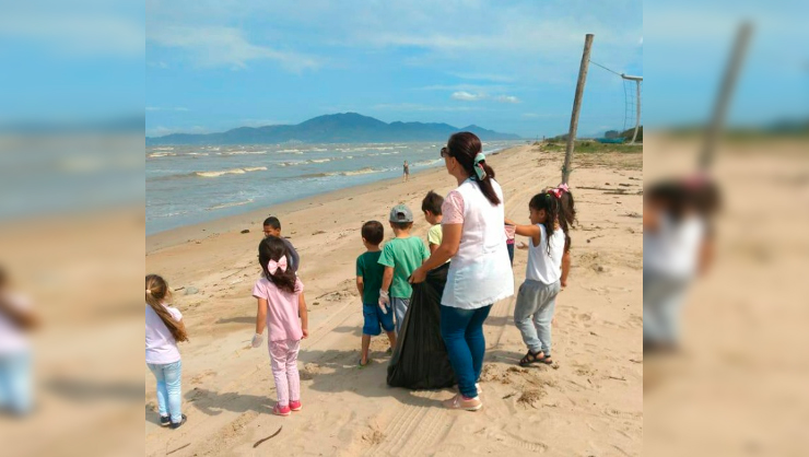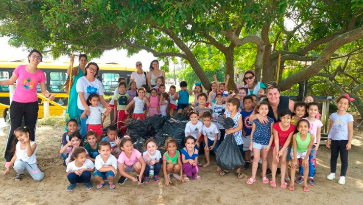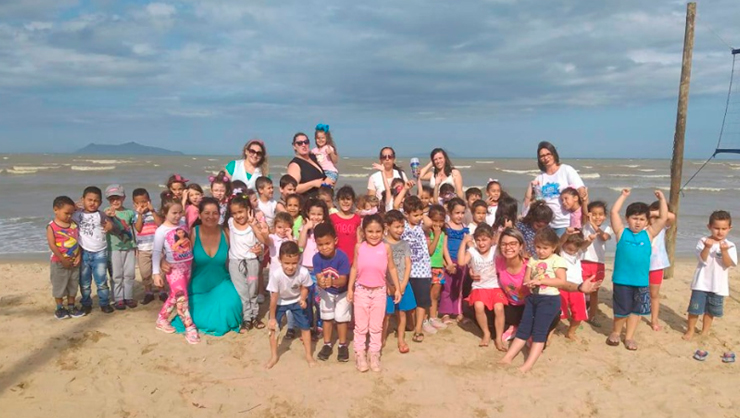 Em uma experiência emocionante e inovadora as crianças recolheram objetos jogados por populares na praia de Tijucas. Moradores que passavam pelo local no momento da ação também ajudaram os baixinhos.