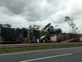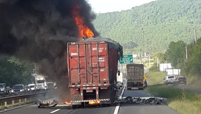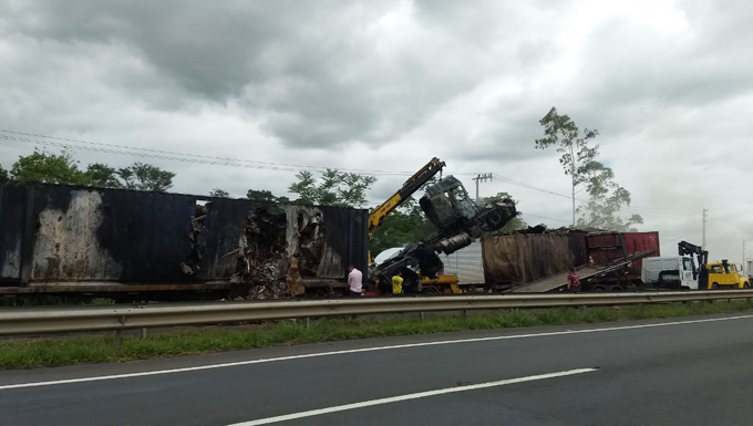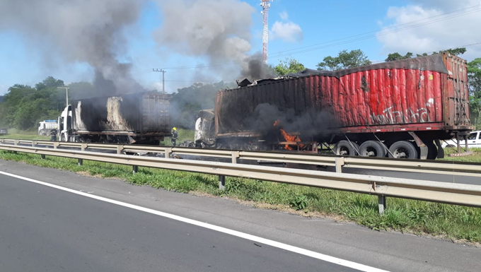 Um caminhoneiro morreu carbonizado em um grave acidente na manhã desta quinta-feira (19) na Br-101, em Maracajá. A colisão traseira envolveu três caminhões sendo um deles de Tijucas.