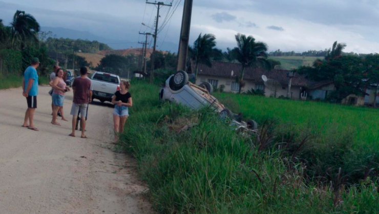 Uma mulher perdeu o controle da direção, saiu da pista e capotou seu veículo nesta segunda-feira (23), em Canelinha. O acidente ocorreu na Estrada Geral Moura, no bairro Moura.