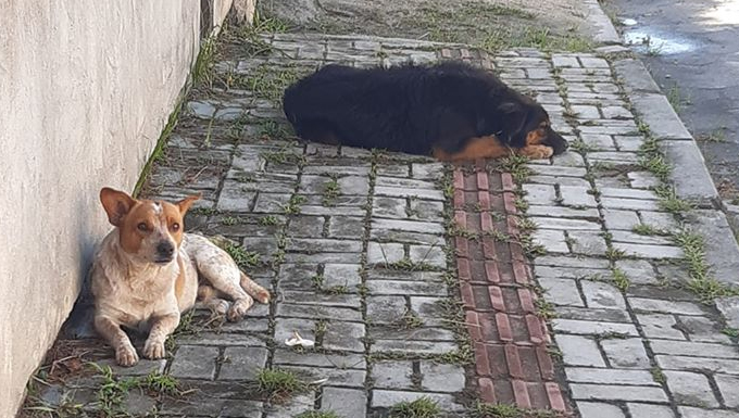 Um dos animais possui coleira, mas não há informações sobre o paradeiro do proprietário.