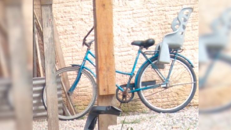 De acordo com informações da proprietária, Paula Renata Vaz Tavares, a bicicleta de cor azul é modelo antigo e estava um pouco enferrujada. O transporte possuía também duas cadeirinhas infantis instaladas.