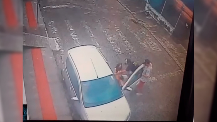 De acordo com imagens de câmeras de videomonitoramento divulgadas, a dupla chega a arrancar a funcionária da escola de dentro do veículo. Um vigilante da instituição tenta ajudar, mas um dos autores o ameaça com uma arma de fogo.
