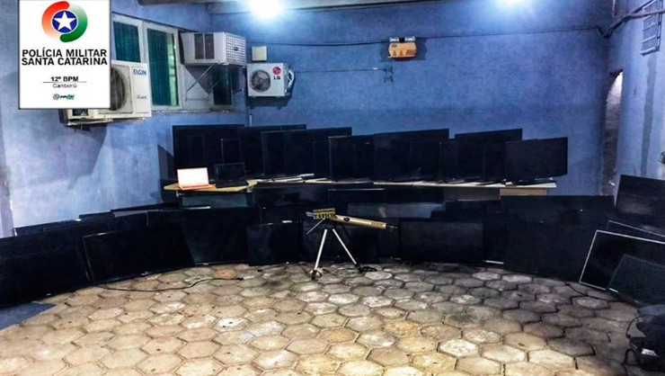 De acordo com informações da PM, foram apreendidos 49 televisores, um automóvel, dois notebooks, um telescópio entre outros intens.