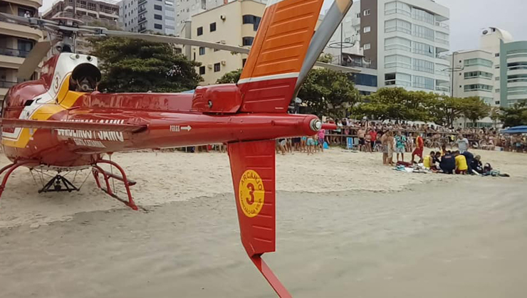 Na tarde desta terça-feira (28), um banhista teve que ser socorrido pelo helicóptero Arcanjo 3 do Corpo de Bombeiros/Samu, após sofrer um afogamento na Praia Central de Itapema.