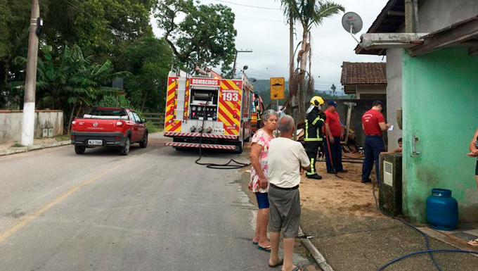 O combate ao fogo foi iniciado e controlado por vizinhos até a chegada dos socorristas. Bombeiros informaram que fogo iniciou em um colchão.
