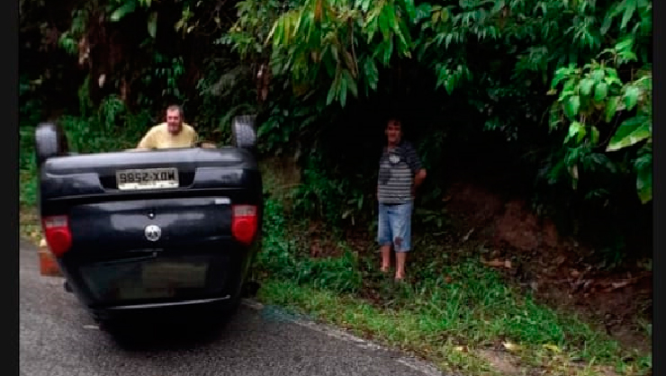 Segundo informações de testemunhas, chovia intensamente no momento em que o motorista, identificado como Zeca, perdeu o controle e o veículo capotou, ficando com as rodas totalmente para cima. Apesar do susto, os dois ocupantes do automóvel não sofreram ferimentos.